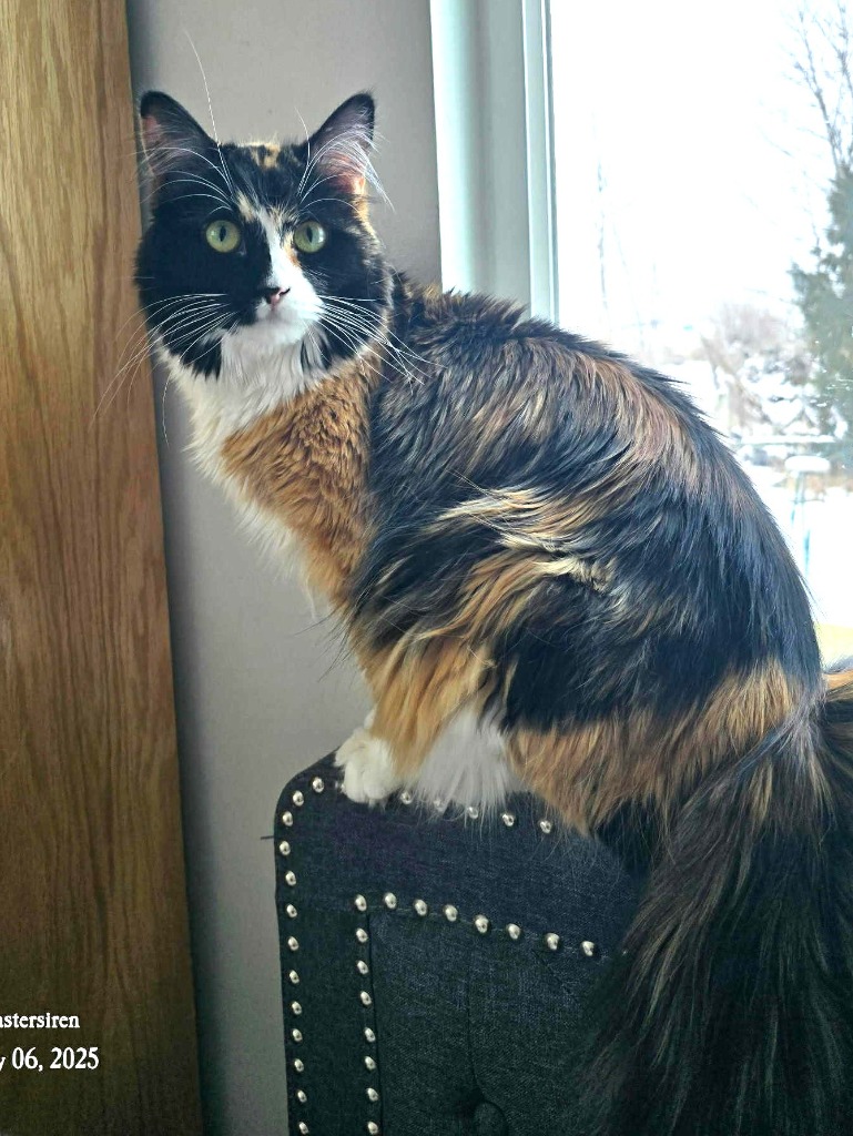S'mores is a gorgeous long haired calico kitty who is shy at first, but then is super sweet and loves to cuddle and get pets. She does ok with other cats, but would rather be the only princess in the home so that she can have all the attention. She was good with the small dog and children in her previous home, but needed time to get used to them. Older respectful kids would be best if there are any in her new home.