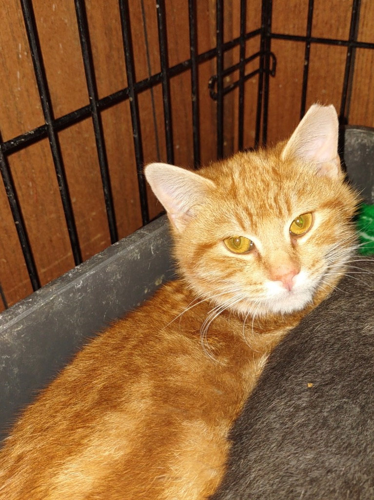 My name is Fire. I was rescued from the great outdoors and, along with my siblings, was placed with a foster who has been socializing us and teaching us to be kittens. We are a little scared and will need much patience, love, and kindness to adjust to our new home.