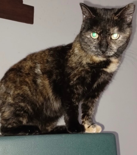 Eternity is a loving Tortoiseshell. She is patient and watchful, gaining confidence with a sweet demeanor and temperament in spite of the hardships she endured prior to coming into rescue for care. She is a joy to be around. She is independent one moment and then runs to you for loves and affection when you walk into a room. She does very well with other cats.