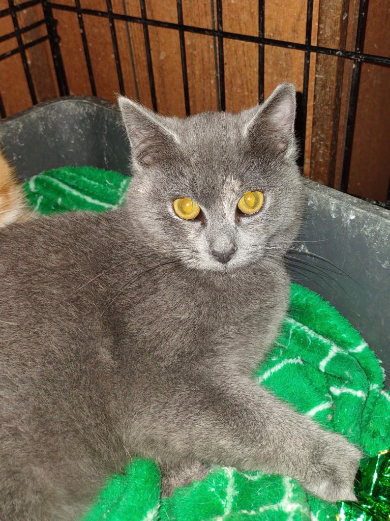 My name is Smokey. I was rescued from the great outdoors and, along with my siblings, was placed with a foster who has been socializing us and teaching us to be kittens. We are a little scared and will need much patience, love, and kindness to adjust to our new home.
