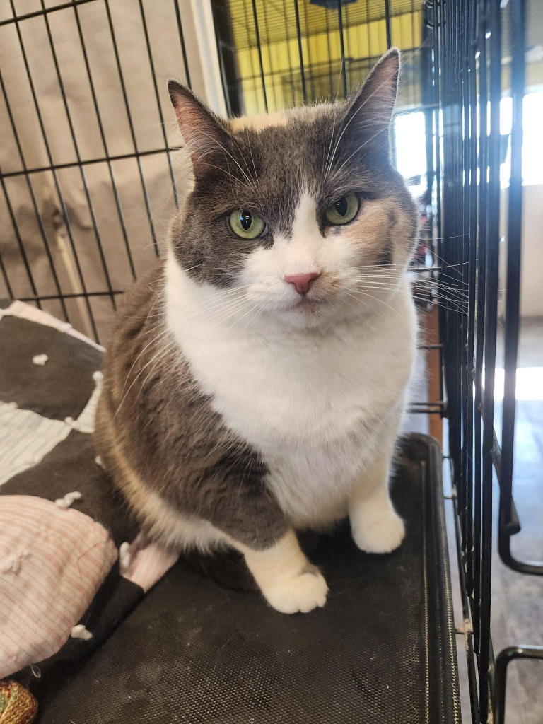 Betty came to us when her owners had to move to assisted living and couldn't take her with them. She is a HUGE, beautiful kitty.