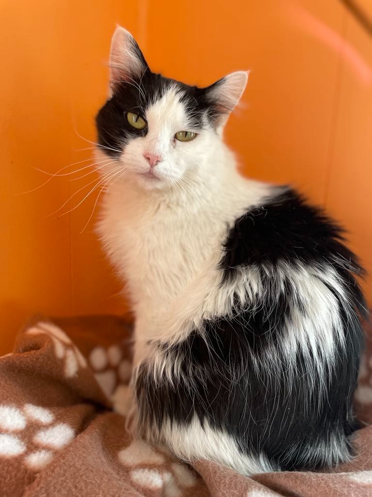 Bootsie is the ultimate cuddle bugโshe adores curling up with you for quiet moments and soaking up sunshine by the window. Sheโs playful when the mood strikes, especially with her favorite cat toys, and she absolutely loves being pampered with a good brushing. When Bootsie came to us, her gorgeous fur was matted, so she was shaved, but she soon will be a floofy girl once again.
